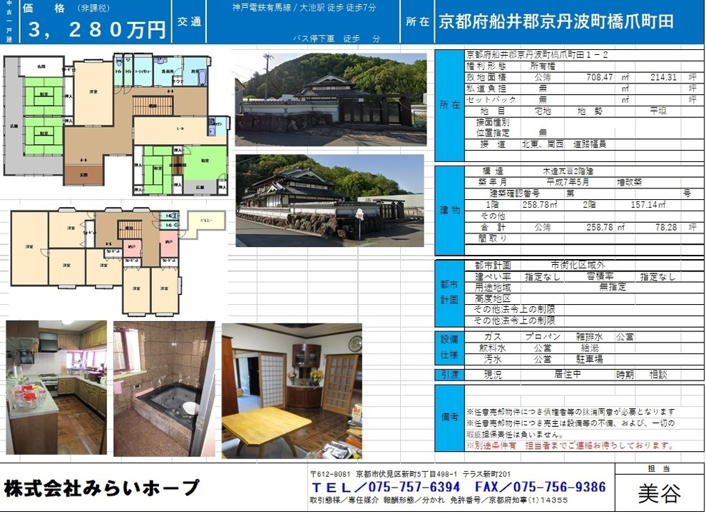物件情報 京都府船井郡京丹波町橋爪町田 公開しました。